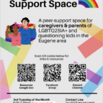A peer-support space for caregivers and parents of LGBTQ2SIA+ and questioning kids in the Eugene area.